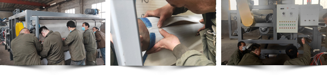 污泥壓濾機是利用濾布兩邊的壓力差,迫使物料中的絕大部分水分透過濾布,流出機體外,而物料被阻隔在濾室內(nèi)形成濾餅,以達(dá)到過濾的目的。由于在過濾過程中濾布兩邊存在著較大的壓力差,提高了過濾速度降低了濾餅的含水。